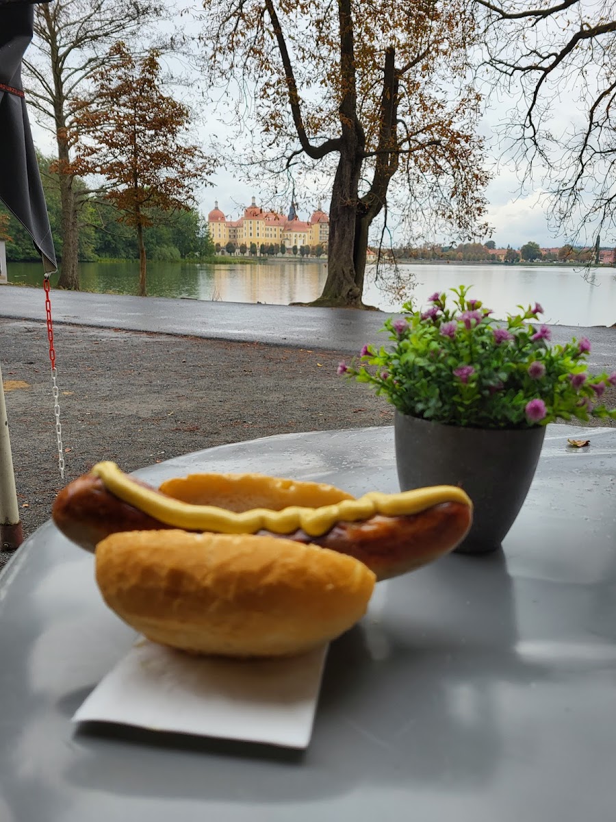 .....heut nach einem ausgedehnten Spaziergang um Moritzburg herum hier angekommen. 1x Knobiwurst, 1x Bocki und 1x Hirtenrolle. Alles schmackhaft und frisch zubereitet. Dankeschön